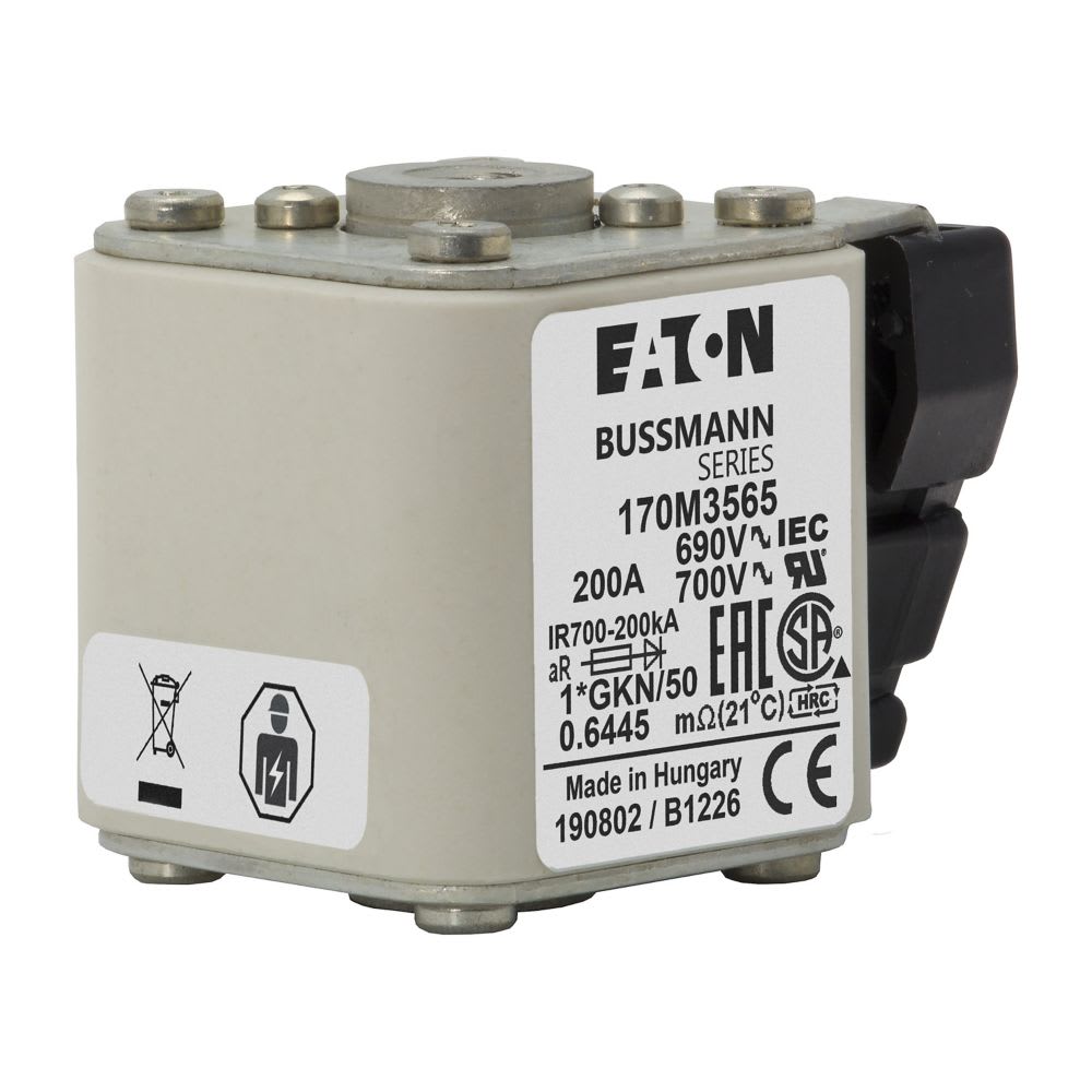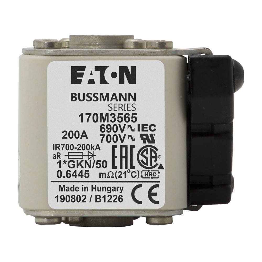 EATON INDUSTRIES - Cartuccia fusibile extra-rapido 200A 690V dimensioni compatte 1,45x59x51mm aR IEC UL indicatore singolo 170M3565 FUSE 200A 690V 1*GKN/50 AR UC. 170M3565