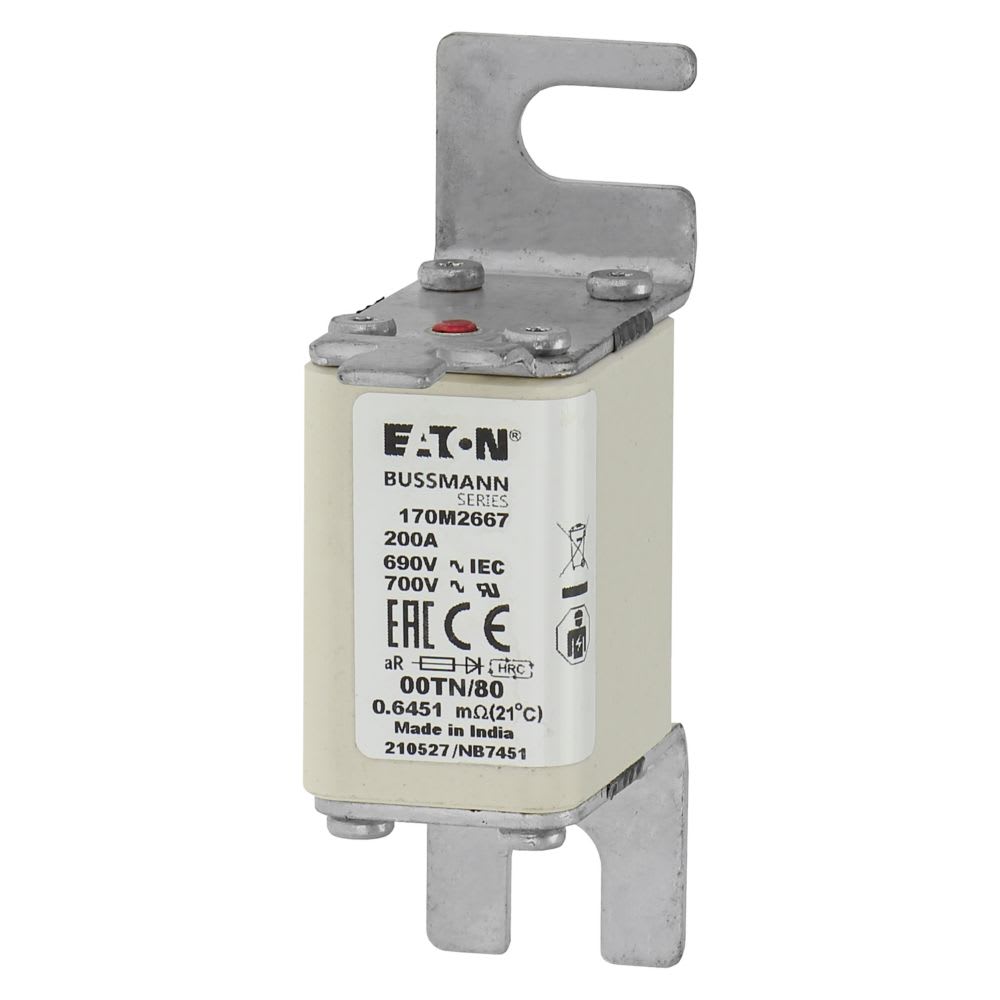 EATON INDUSTRIES - Cartuccia fusibile extra-rapido 200A 690V DIN 00 aR IEC indicatore singolo linguette impugnatura sotto tensione 170M2667 FUSE 00TN/80 UR. 170M2667