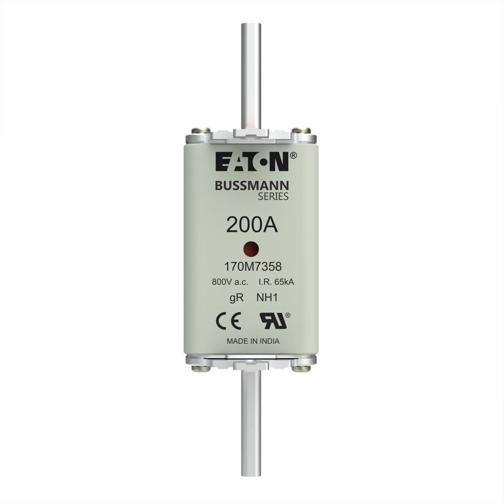 EATON INDUSTRIES - Cartuccia fusibile extra rapido 200A 800V AC dimensioni NH1 135x53x40mm gR IEC indicatore doppio 170M7358 F 200A 800VAC GR SIZE 1 DUAL IN 170M7358