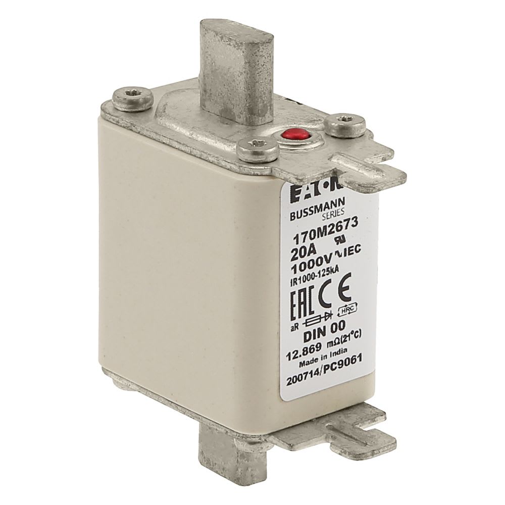 EATON INDUSTRIES - Cartuccia fusibile extra rapido 20A 1000V DIN 00 aR IEC indicatore singolo linguette impugnatura sotto tensione 170M2673 FUSE 170M2673