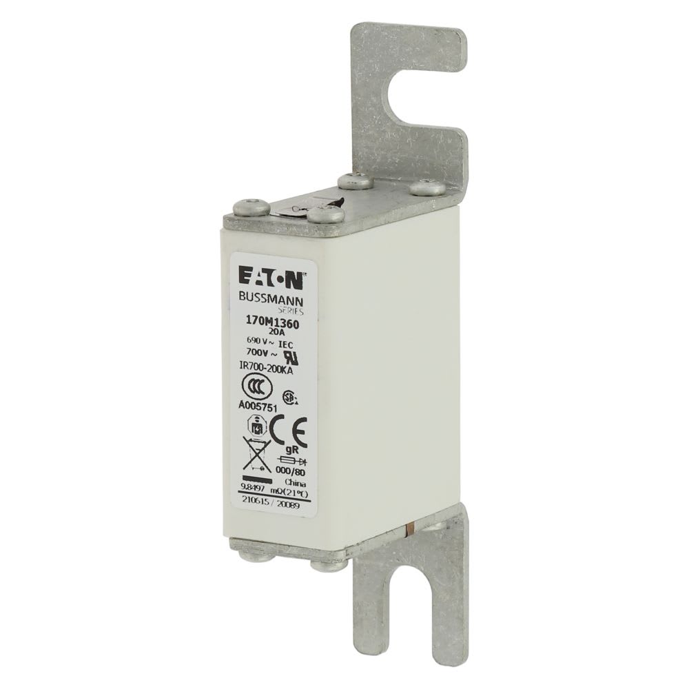 EATON INDUSTRIES - Cartuccia fusibile extra rapido 20A 690V 21x40x100mm gR DIN IEC indicatore singolo 170M1360 FUSE AC 690V 000/80 GR UC