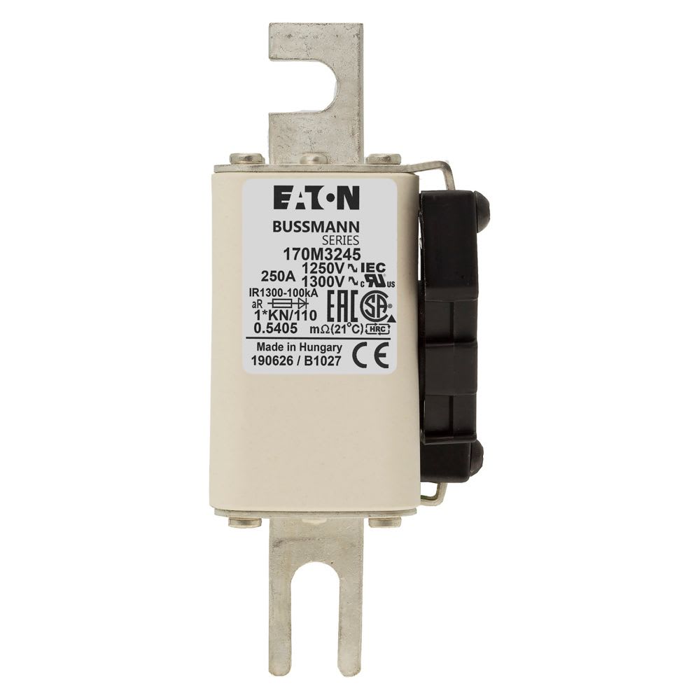 EATON INDUSTRIES - Cartuccia fusibile extra-rapido 250A 1250V dimensioni compatte 1,45 x 58 x 138mm aR DIN IEC KN/110 indicatore singolo CU. 170M3245