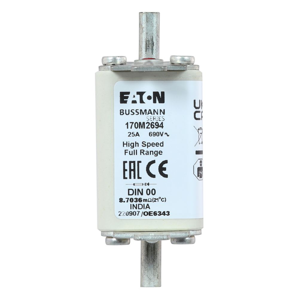 EATON INDUSTRIES - Cartuccia fusibile extra rapido 25A 690V DIN 00 30x60x79mm gR IEC AC indicatore singolo 170M2694 FUSE. 170M2694