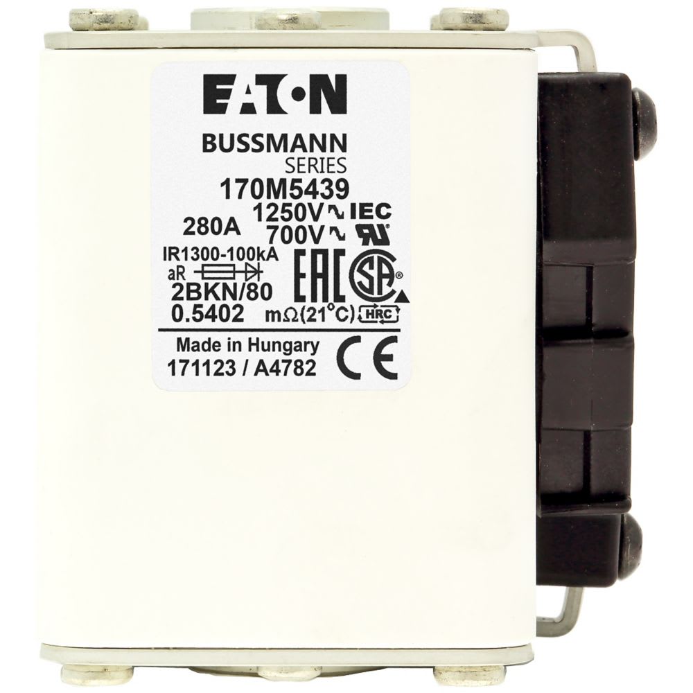 EATON INDUSTRIES - Cartuccia fusibile extra-rapido 280A 1250V 2BKN/80 AC 61x77x81mm aR IEC UL indicatore singolo 170M5439 FUSE. 170M5439