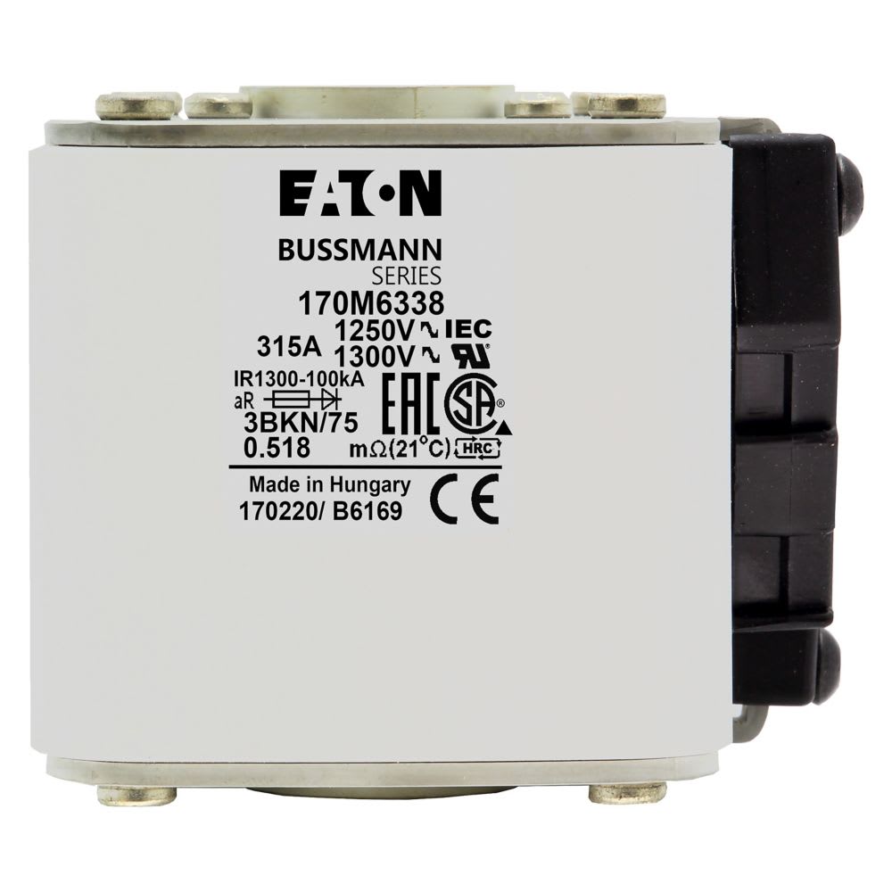 EATON INDUSTRIES - Cartuccia fusibile extra-rapido 315A 1250V 3BKN/75 AC 76x92x76mm AR CU IEC UL indicatore singolo. 170M6338