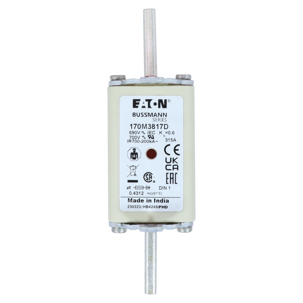 EATON INDUSTRIES - Cartuccia fusibile extra rapido 315A 690V AC DIN 1 aR IEC indicatore doppio linguette impugnatura sotto tensione 170M3817D FUSE HSDNH 170M3817D
