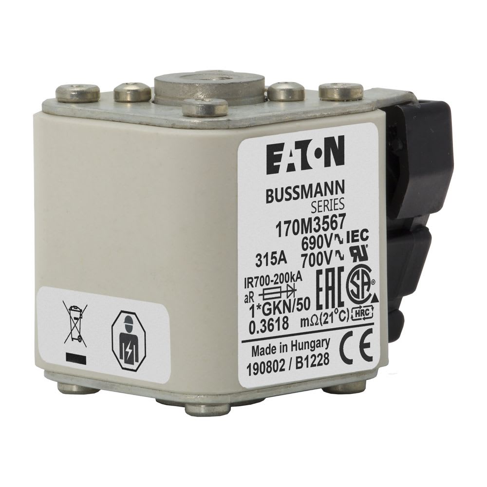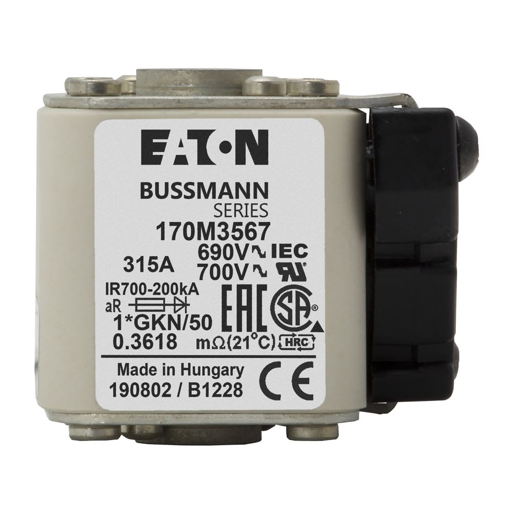 EATON INDUSTRIES - Cartuccia fusibile extra-rapido 315A 690V dimensione compatte 1 45 x 59 x 51 mm aR IEC UL indicatore singolo 170M3567 FUSE 1*GKN/50 AR UC 0 170M3567