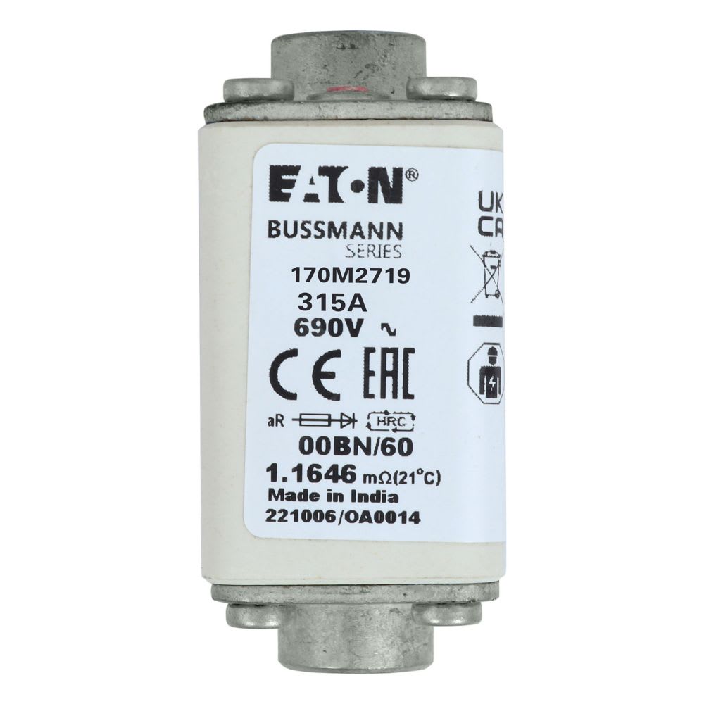 EATON INDUSTRIES - Cartuccia fusibile extra-rapido 315A 690V dimensioni 00 30x48x64mm aR IEC indicatore ottico 170M2719 FUSE 315A 690V 00BN/60 AR 170M2719