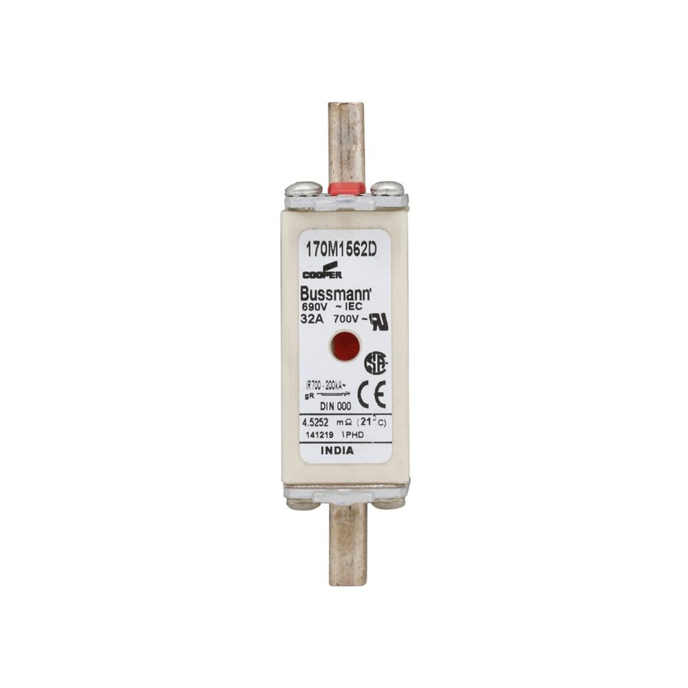 EATON INDUSTRIES - Cartuccia fusibile extra rapido 32A 690V GR DIN 000 IEC indicatore doppio linguette impugnatura sotto tensione 170M1562D HSDNH 170M1562D