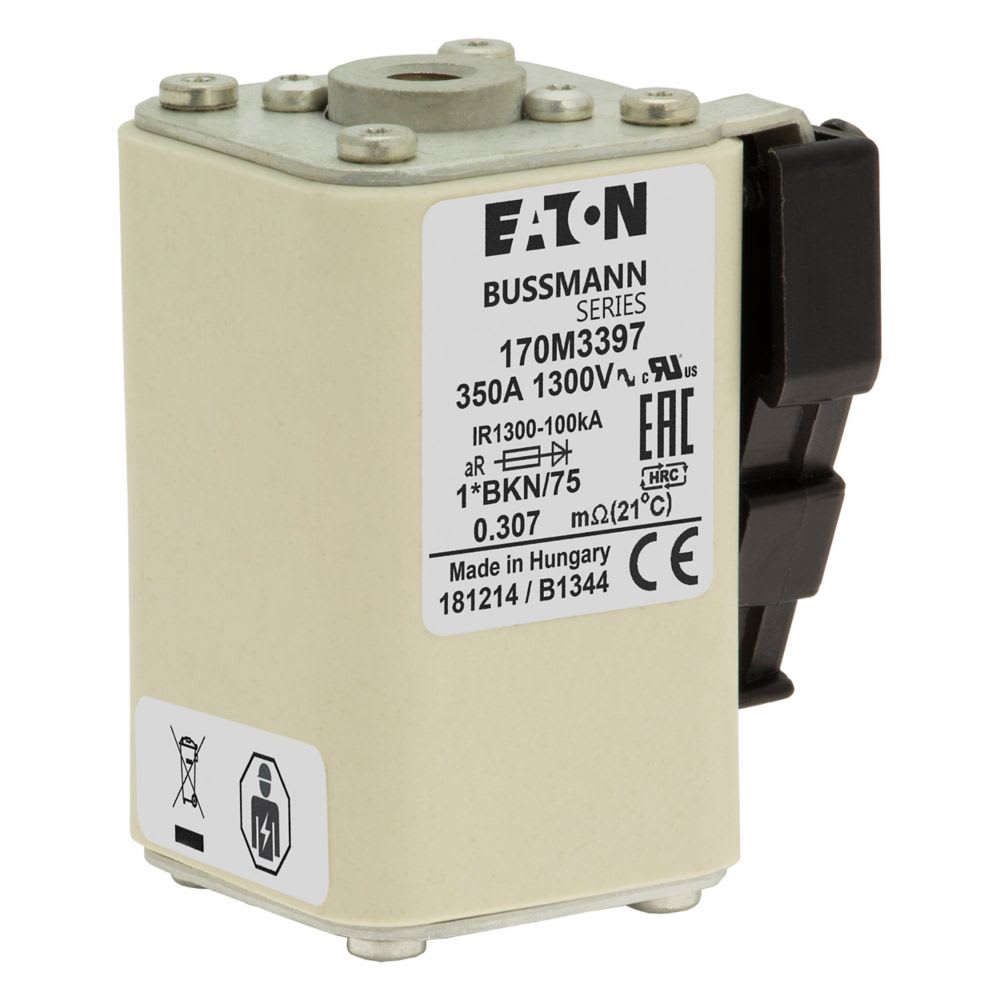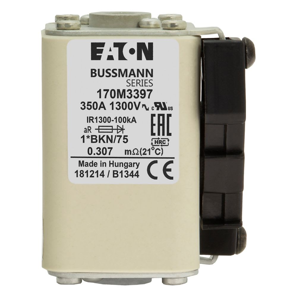 EATON INDUSTRIES - Cartuccia fusibile extra-rapido 350A 1250V dimensioni compatte 1,45x59x75mm aR IEC UL indicatore singolo 170M3397 FUSE BKN/75 AR CU. 170M3397