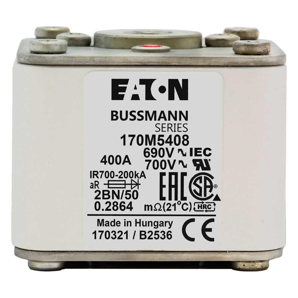 EATON INDUSTRIES - Cartuccia fusibile extra-rapido 400A 690V 2BN/50 AR UC dimensioni 2,61 x 77 x 51mm IEC UL indicatore singolo. 170M5408