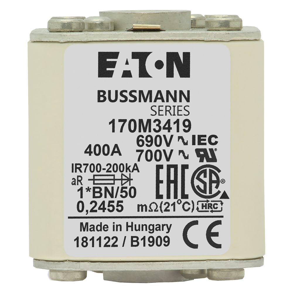 EATON INDUSTRIES - Cartuccia fusibile extra-rapido 400A 690V dimensioni compatte 1, 45 x 59 x 51 mm aR IEC UL indicatore singolo 170M3419 FUSE 1*BN/50 AR UC. 170M3419