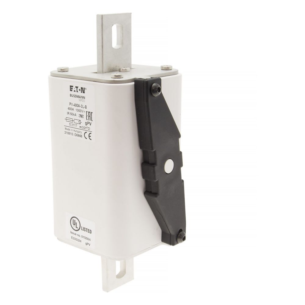 EATON INDUSTRIES - Cartuccia fusibile extra-rapido 400A DC 1000V 3L 75x91x205mm gPV UL IEC con indicatore contatti fissaggio a bullone PV-400A-3L-B FUSE 400A 1000V 3L PV BOLT