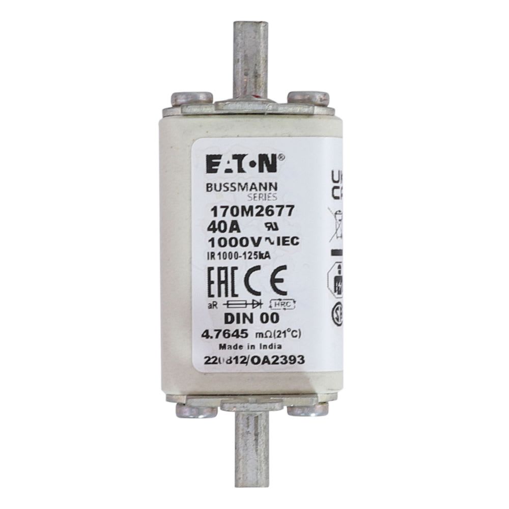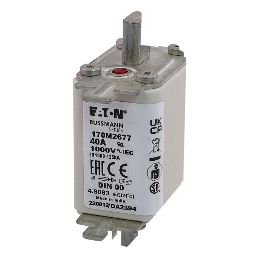 EATON INDUSTRIES - Cartuccia fusibile extra rapido 40A 1000V DIN 00 AR IEC indicatore singolo linguette impugnatura sotto tensione 170M2677 FUSE. 170M2677