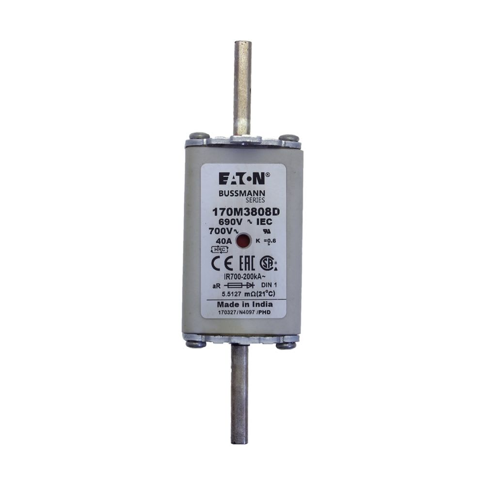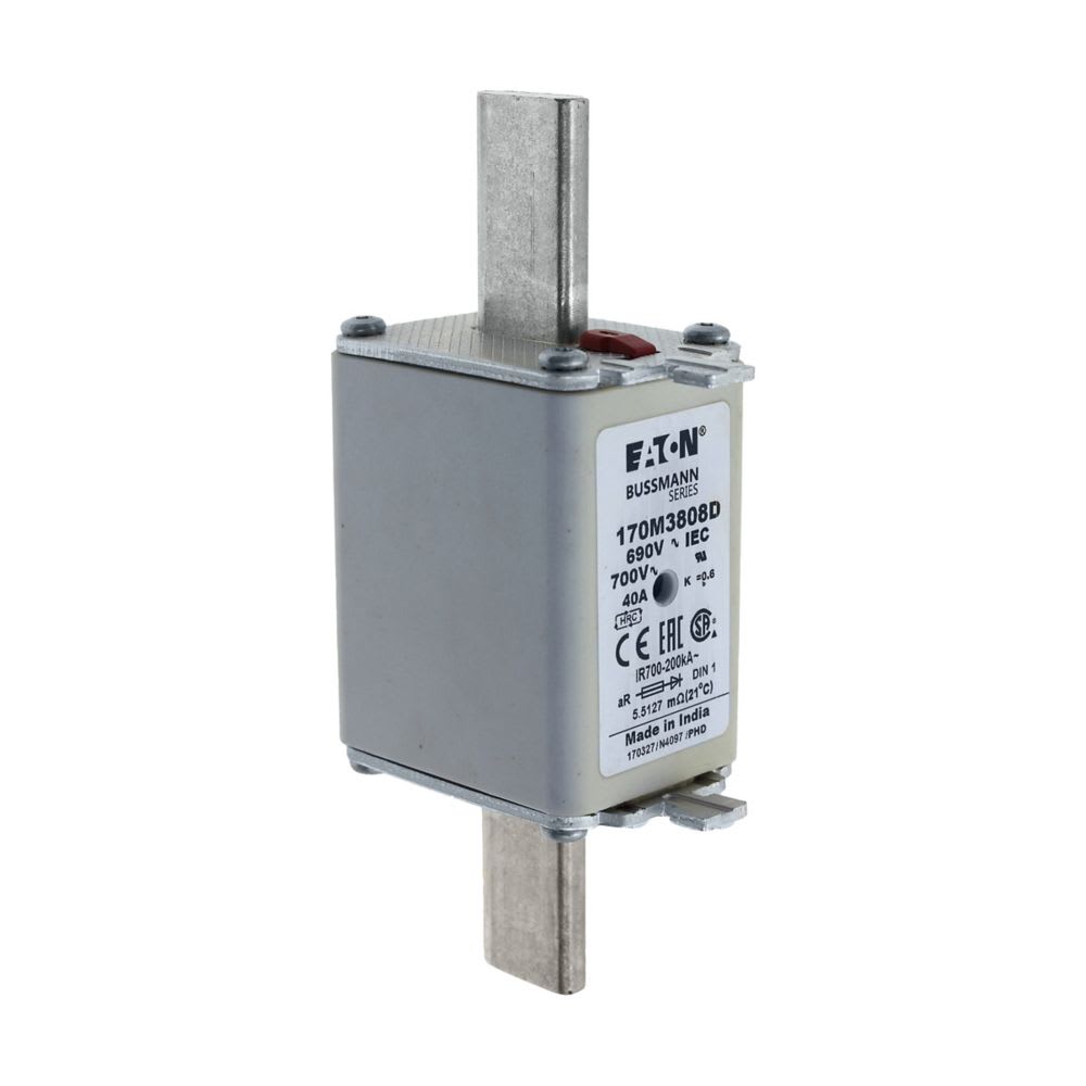 EATON INDUSTRIES - Cartuccia fusibile extra rapido 40A 690V AC DIN 1 aR IEC indicatore doppio linguette impugnatura sotto tensione 170M3808D FUSE HSDNH 170M3808D