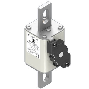 Fusibile, cartuccia fusibile, extra-rapido, 450 A, AC 1250 V, size 1, 53 x 69 x 160 mm, aR, IEC, UL, indicatore singolo, corpo quadrato con terminali di collegamento centrati, modello US, indicatore stile K per microinterruttore, protezione semiconduttori, IEC 60269-4, potere di apertura 100 kA