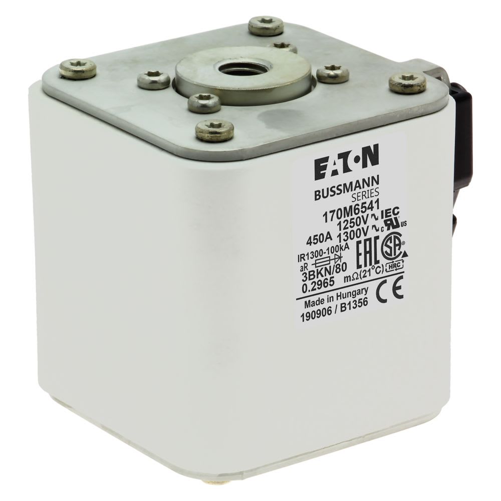 EATON INDUSTRIES - Cartuccia fusibile extra-rapido 450A 1250V 3BKN/80 AR CU dimensioni 3,76 x 92 x 83mm IEC UL indicatore singolo. 170M6541