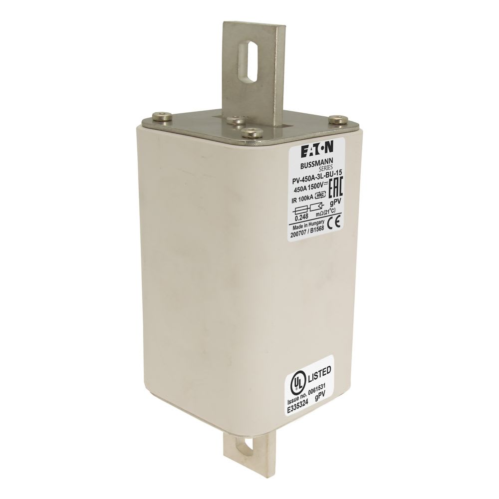 EATON INDUSTRIES - Cartuccia fusibile extra-rapido 450A 1500V 3L 75x91x201mm gPV UL IEC senza indicatore contatti con fissaggio a bullone PV-450A-3L-BU-15 FUSE 450A 1500V PV NO I