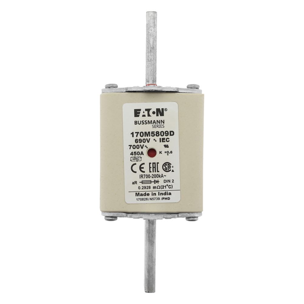 EATON INDUSTRIES - Cartuccia fusibile extra-rapido 450A 690V AC DIN2 aR IEC indicatore doppio linguette impugnatura sotto tensione HSDNH. 170M5809D