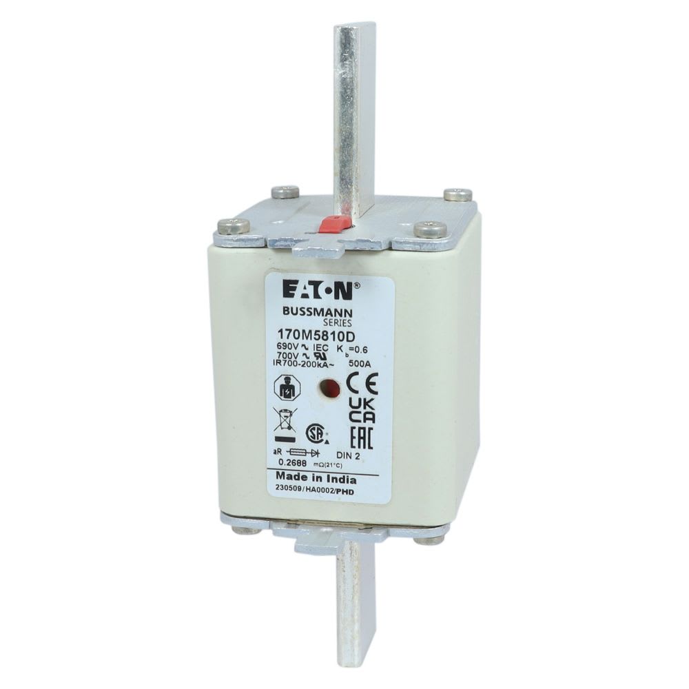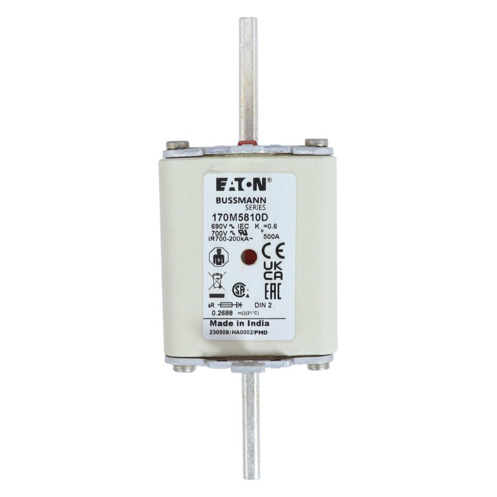 EATON INDUSTRIES - Cartuccia fusibile extra rapido 500A 690V AC DIN 2 aR IEC indicatore doppio linguette impugnatura sotto tensione 170M5810D FUSE HSDNH 170M5810D