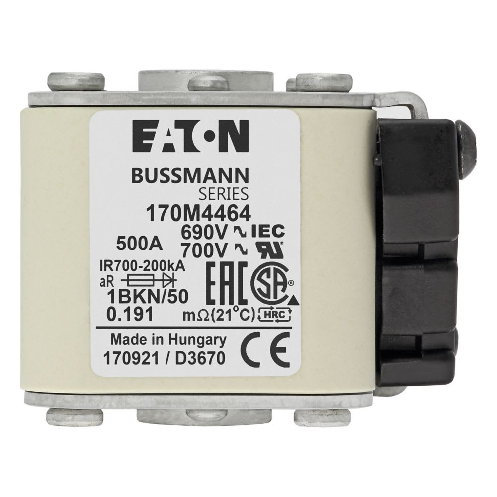 EATON INDUSTRIES - Cartuccia fusibile extra rapido 500A 690V dimensioni 1 aR IEC UL indicatore singolo 170M4464 FUSE 500A 690V 1BKN/50 AR UC. 170M4464