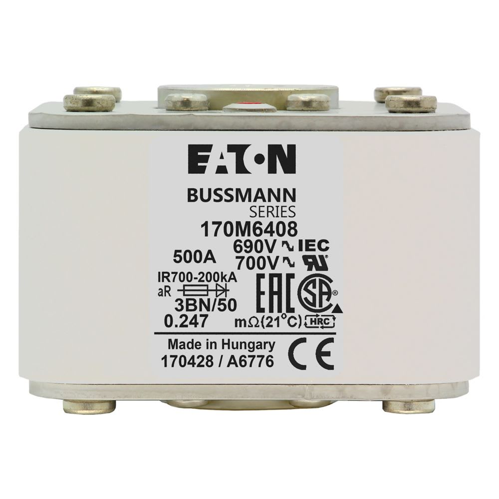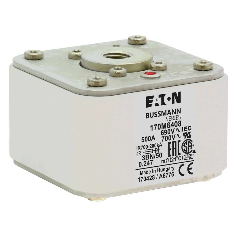 EATON INDUSTRIES - Cartuccia fusibile extra rapido 500A 690V dimensioni 3 aR IEC UL indicatore singolo 170M6408 FUSE 3BN/50 AR UC. 170M6408