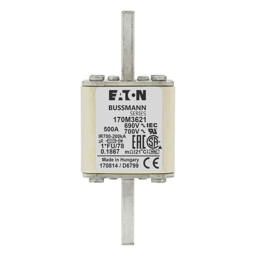 EATON INDUSTRIES - Cartuccia fusibile extra-rapido 500A 690V dimensioni compatte 1,45x45x110mm aR IEC UL 170M3621 FUSE 500A 690V 1*FU/78 AR UC 170M3621