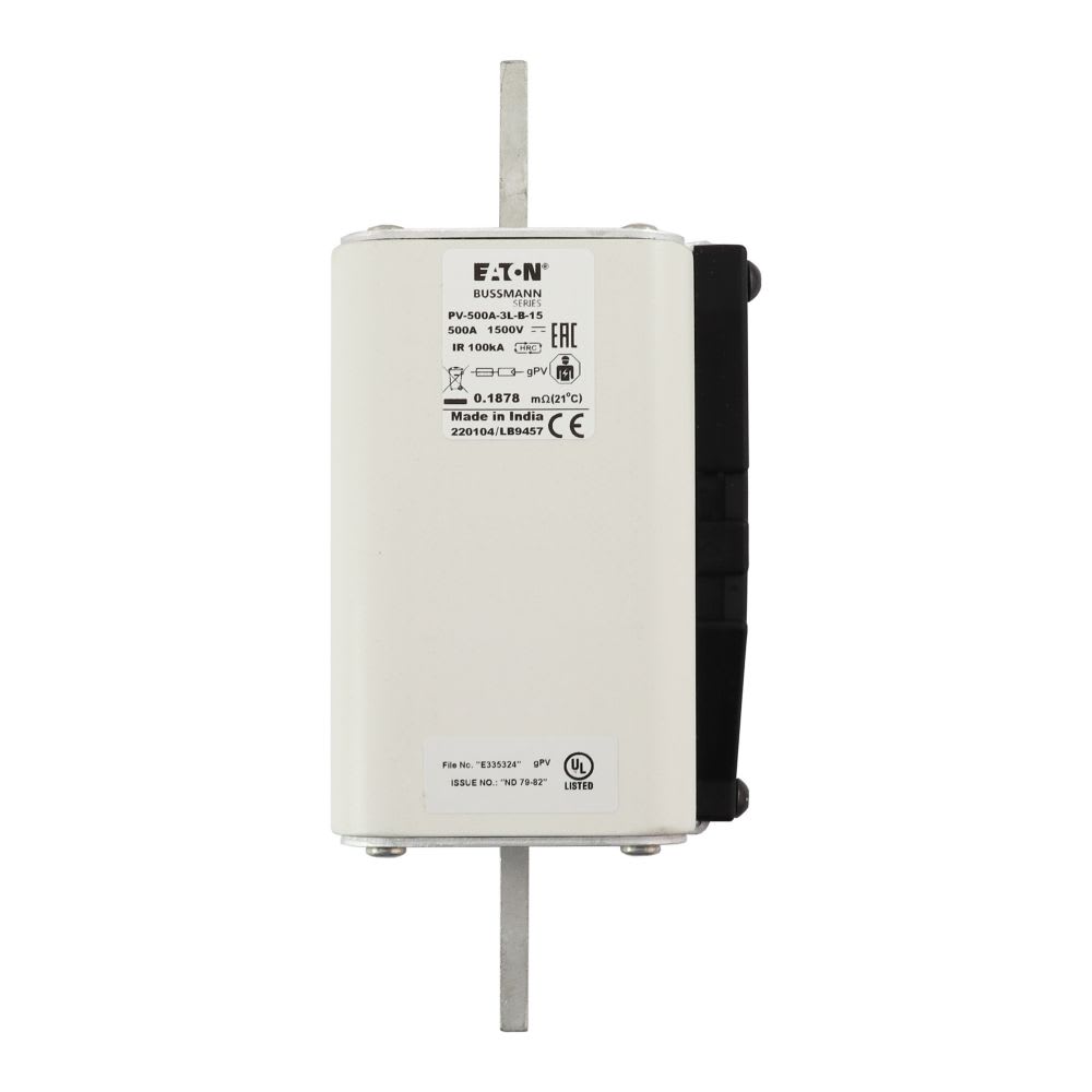 EATON INDUSTRIES - Cartuccia fusibile extra-rapido 500A DC 1500V 3L 75x91x205mm gPV UL IEC con indicatore contatti fissaggio a bullone PV-500A-3L-B-15 FUSE 500A 1500V 3L BOLT