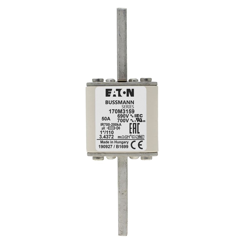 EATON INDUSTRIES - Cartuccia fusibile extra-rapido 50A 690V dimensioni compatte 1 45 x 45 x 134 mm aR DIN IEC indicatore singolo 170M3159 TN/110 AR. 170M3159