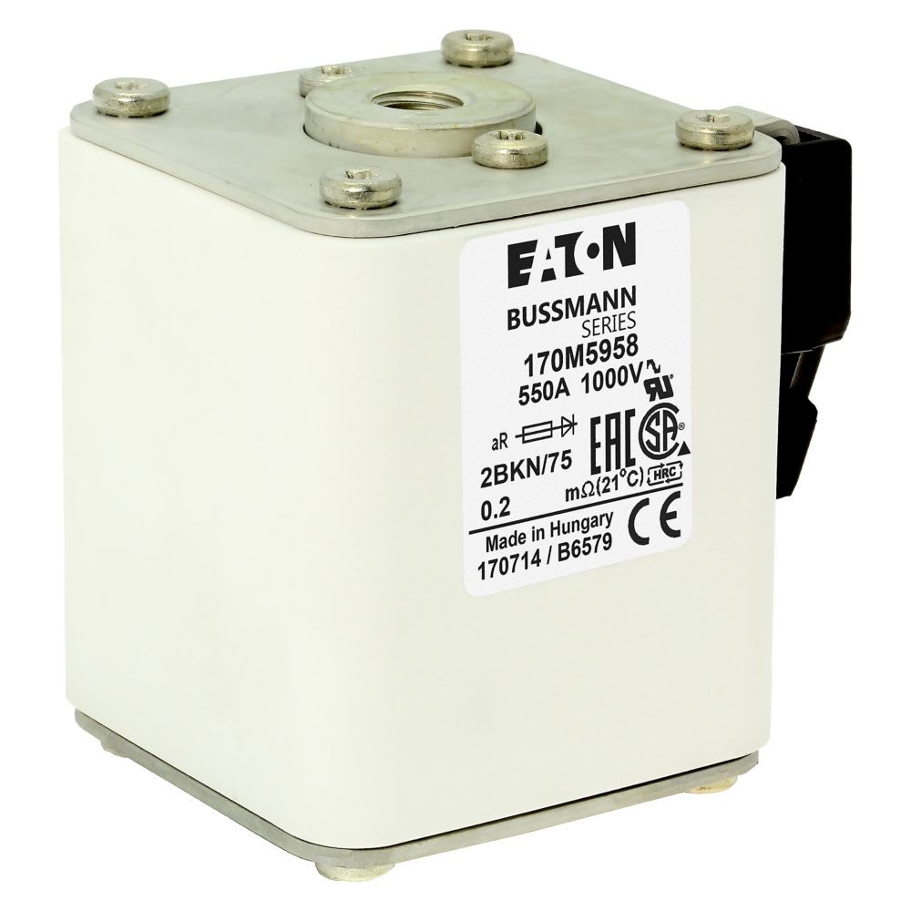 EATON INDUSTRIES - Cartuccia fusibile extra-rapido 550A 1000V 2BKN/75 AC UR dimensioni 2,59 x 77 x 75mm IEC UL indicatore singolo. 170M5958