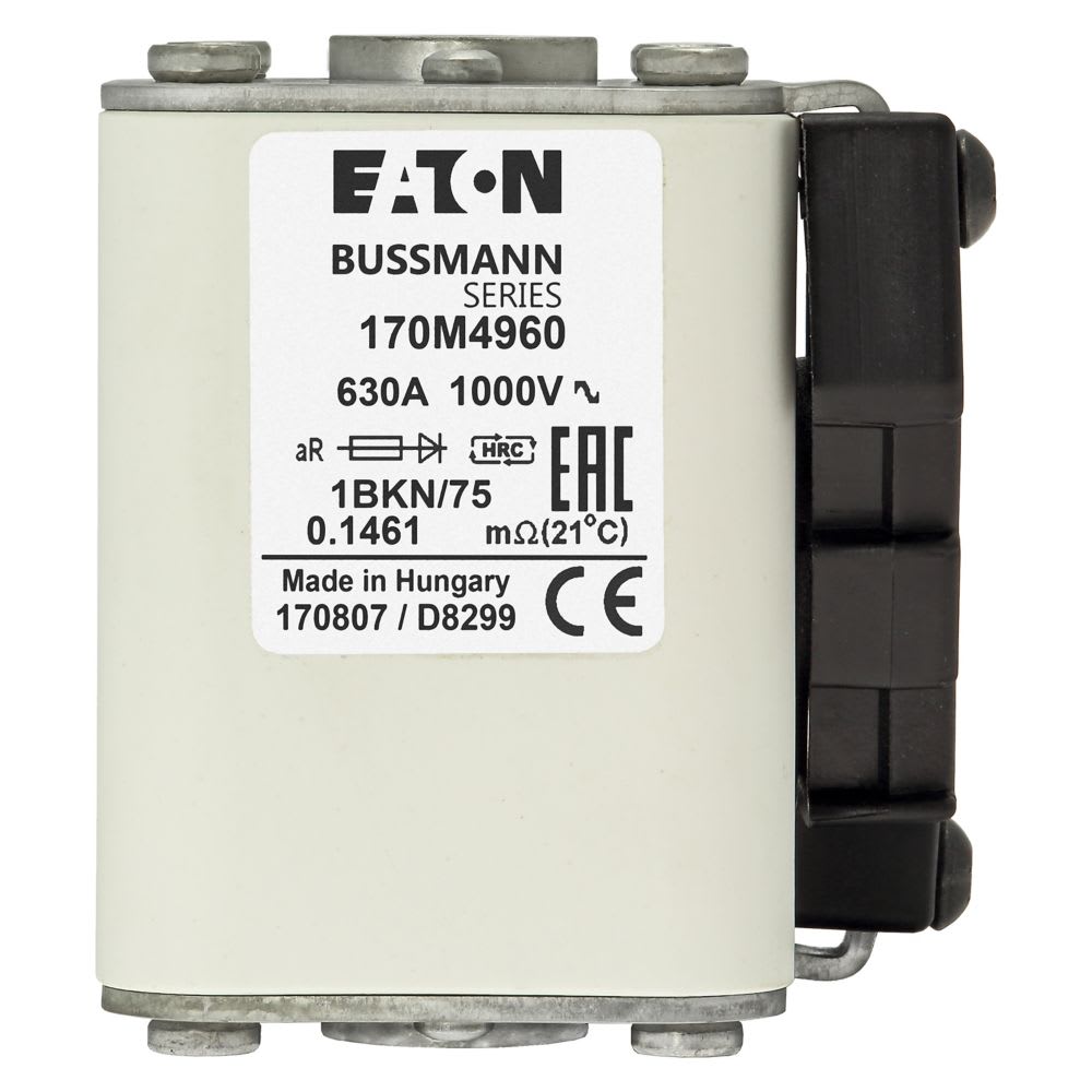 EATON INDUSTRIES - Cartuccia fusibile extra-rapido 630A 1000V 1BKN/75 AR dimensioni 1,52 x 69 x 74mm IEC UL indicatore singolo.
