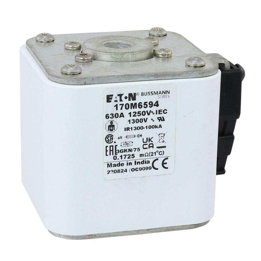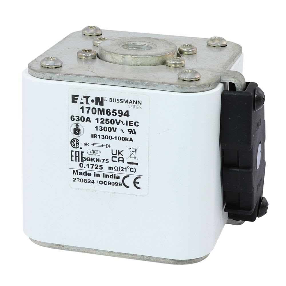 EATON INDUSTRIES - Cartuccia fusibile extra-rapido 630A 1250V 3GKN/75 AR CU dimensioni 3,76 x 92 x 76mm AC IEC UL indicatore singolo. 170M6594