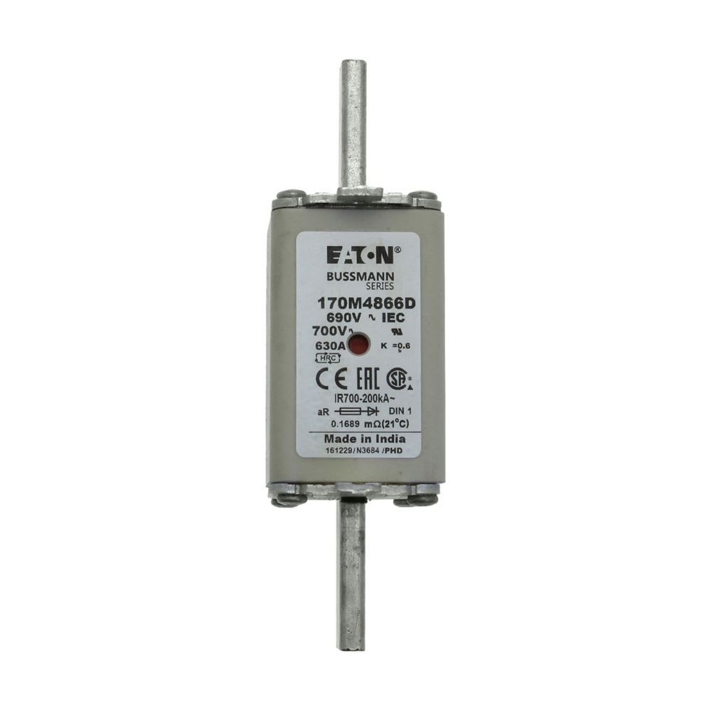 EATON INDUSTRIES - Cartuccia fusibile extra-rapido 630A 690V AC DIN 1 aR IEC indicatore doppio linguette impugnatura sotto tensione 170M4866D HSDNH 170M4866D