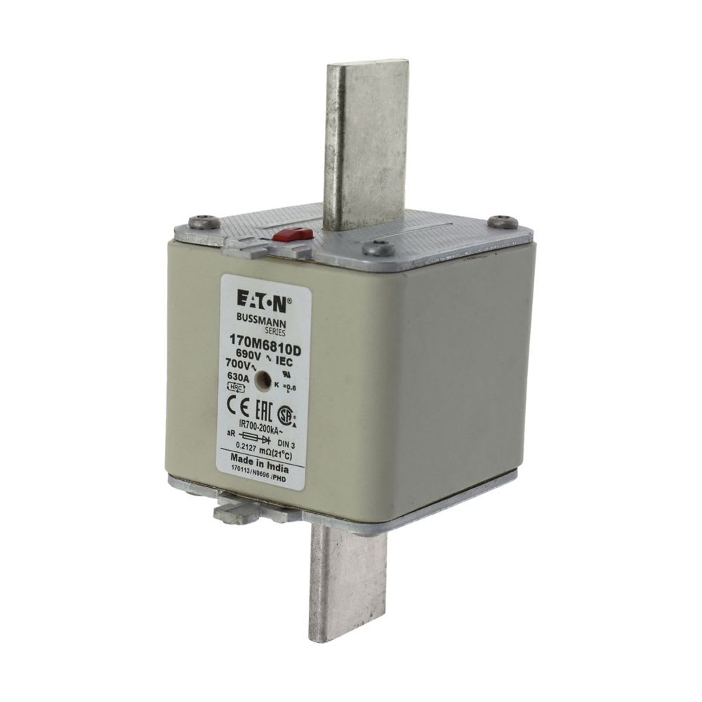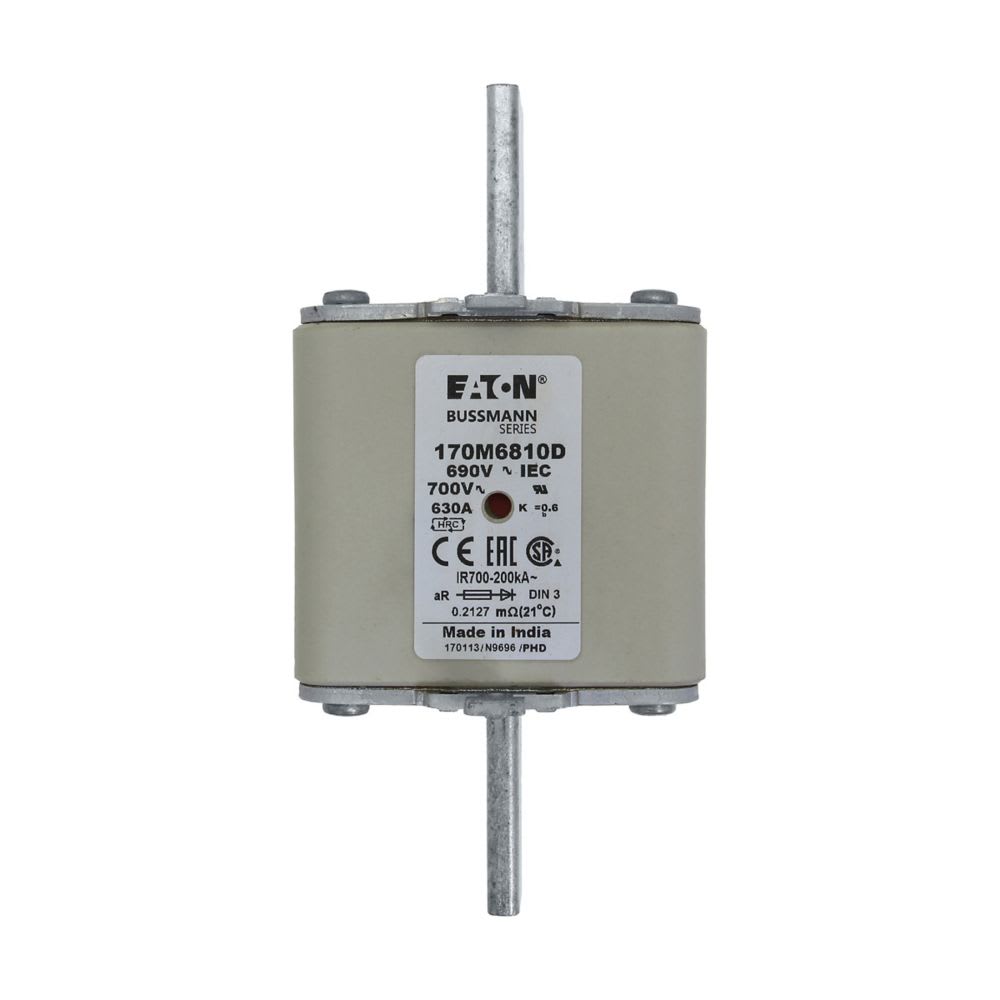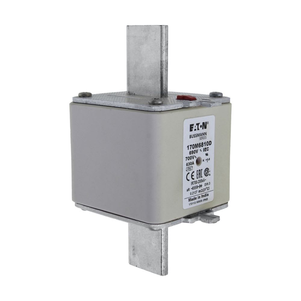 EATON INDUSTRIES - Cartuccia fusibile extra-rapido 630A 690V AC DIN3 aR IEC indicatore doppio linguette impugnatura sotto tensione HSDNH. 170M6810D