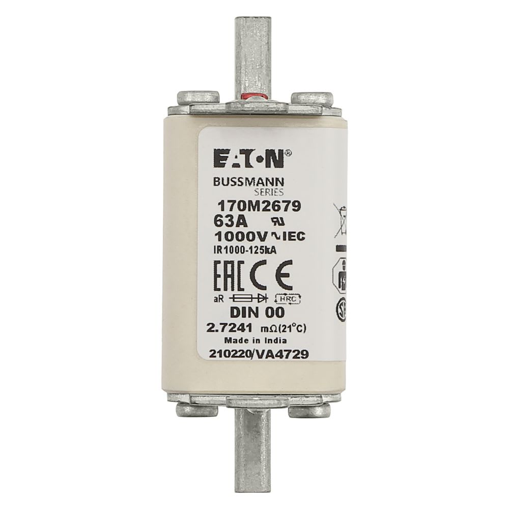 EATON INDUSTRIES - Cartuccia fusibile extra-rapido 63A 1000V DIN 00 AR IEC indicatore singolo linguette impugnatura sotto tensione 170M2679 FUSE. 170M2679