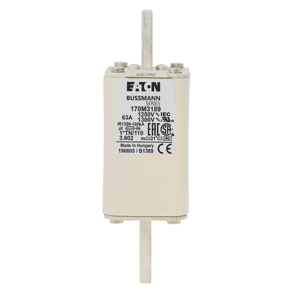 EATON INDUSTRIES - Cartuccia fusibile extra-rapido 63A 1250V dimensioni compatte 1,45x58x138mm aR DIN IEC indicatore singolo 170M3189 FUSE 63A 1250V 1*TN/110 AR CU. 170M3189