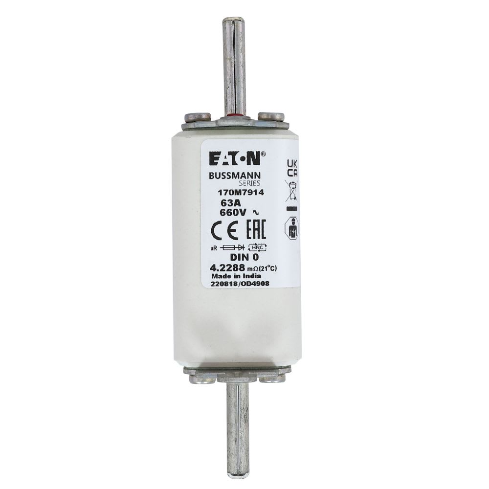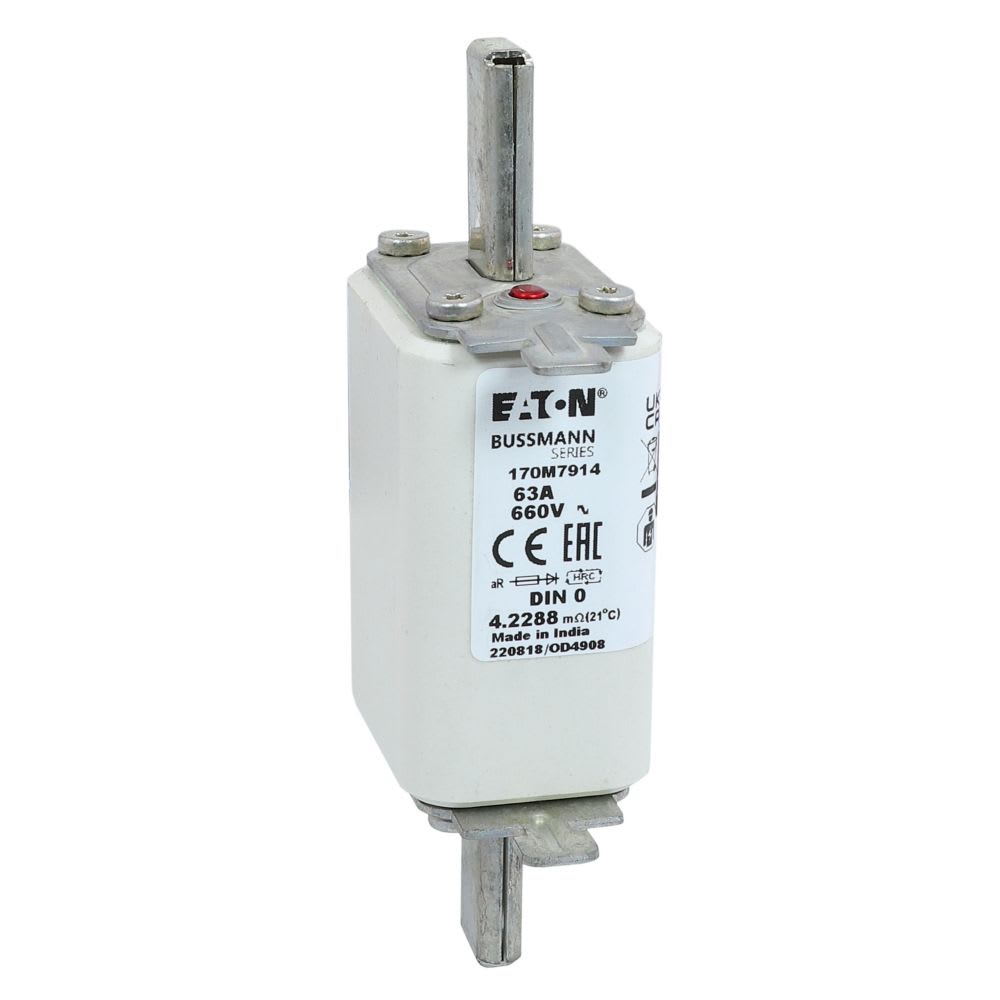 EATON INDUSTRIES - Cartuccia fusibile extra rapido 63A 660V DIN 0 AR IEC indicatore singolo linguette impugnatura sotto tensione 170M7914 FUSE. 170M7914