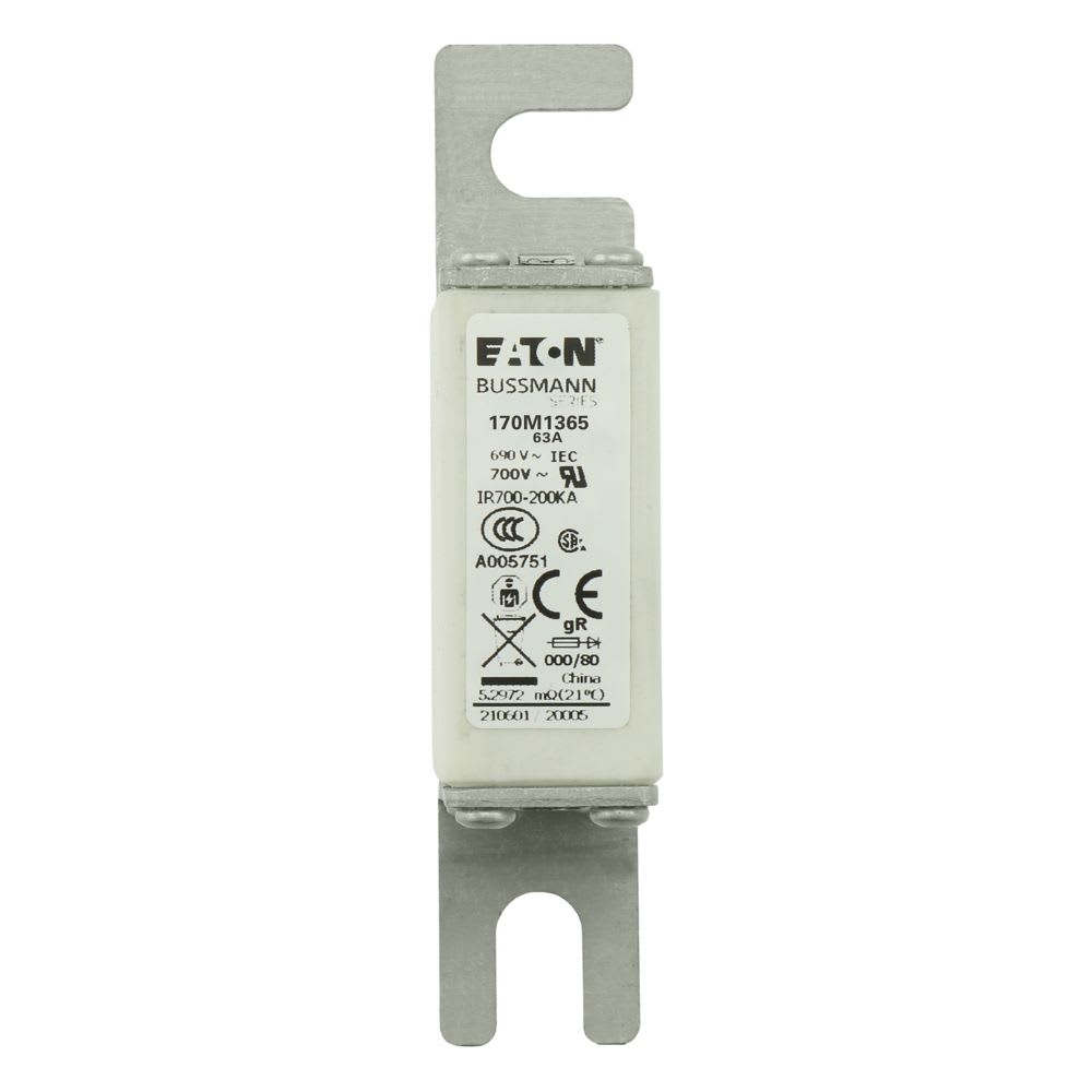 EATON INDUSTRIES - Cartuccia fusibile extra-rapido 63A 690V 21x40x100mm gR DIN IEC indicatore singolo 170M1365 FUSE AC 690V 000/80 GR UC 170M1365