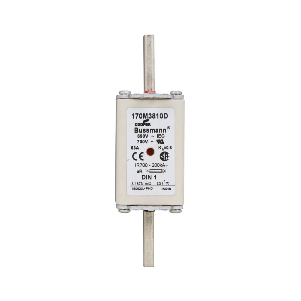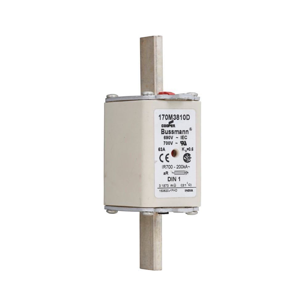 EATON INDUSTRIES - Cartuccia fusibile extra rapido 63A 690V AC DIN1 aR IEC indicatore doppio linguette impugnatura sotto tensione 170M3810D FUSE 63A 690V AR DIN1 HSDNH 170M3810D