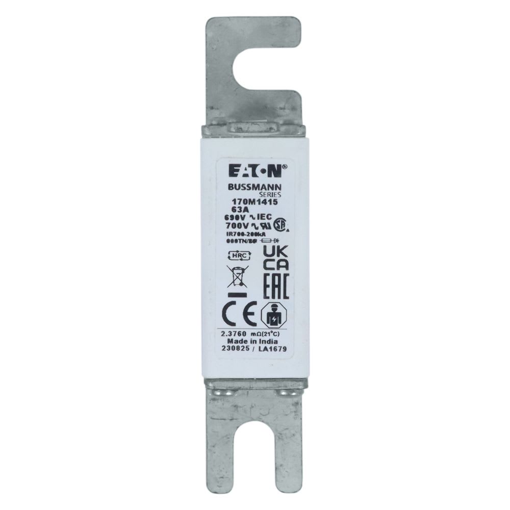 EATON INDUSTRIES - Cartuccia fusibile extra-rapido 63A 690V DIN 000 gR IEC indicatore singolo linguette impugnatura sotto tensione 170M1415 FUSE 63A 690V 000TN/80 GR UC. 170M1415