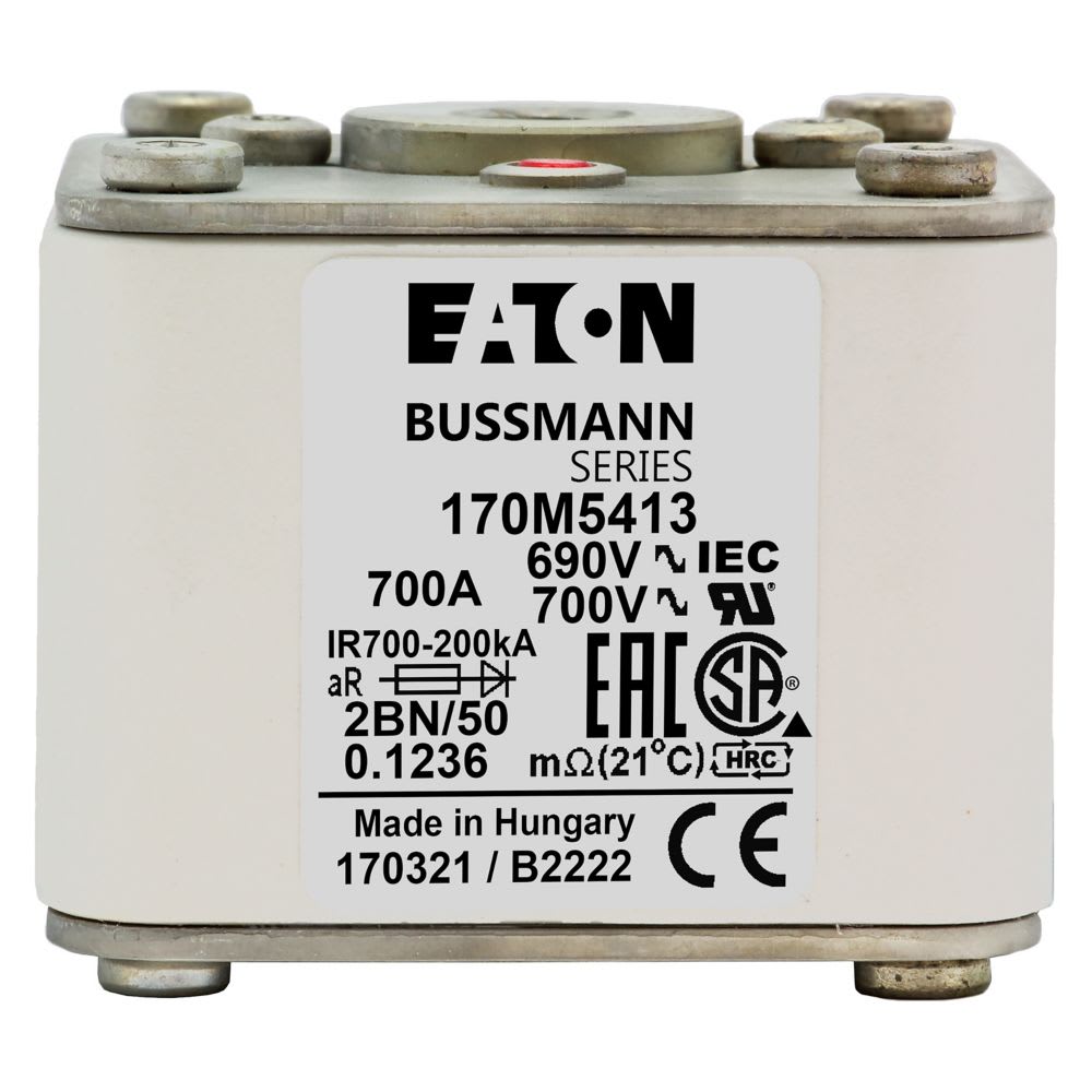 EATON INDUSTRIES - Cartuccia fusibile extra-rapido 700A 690V 2BN/50 AR UC 61x77x51mm IEC UL indicatore singolo. 170M5413