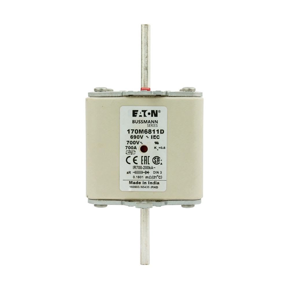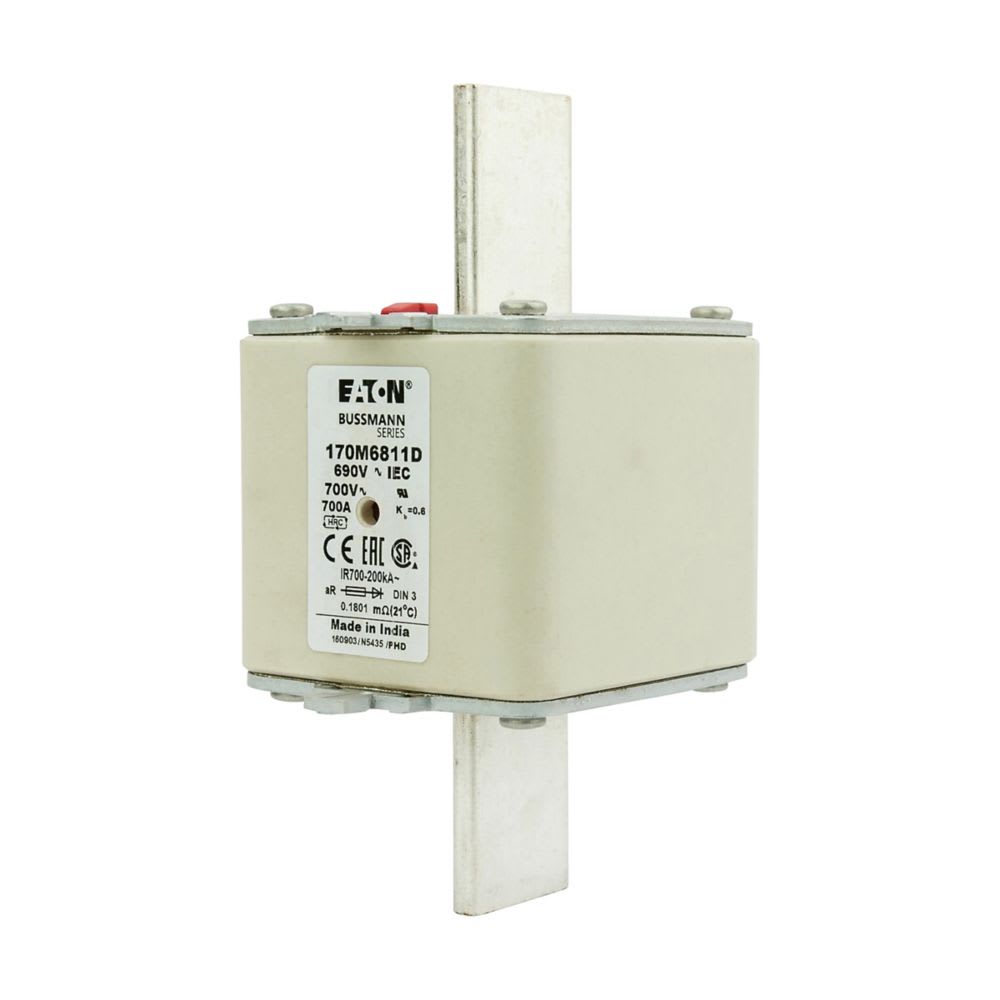 EATON INDUSTRIES - Cartuccia fusibile extra rapido 700A 690V AC DIN 3 aR IEC indicatore doppio linguette impugnatura sotto tensione 170M6811D FUSE HSDNH 170M6811D