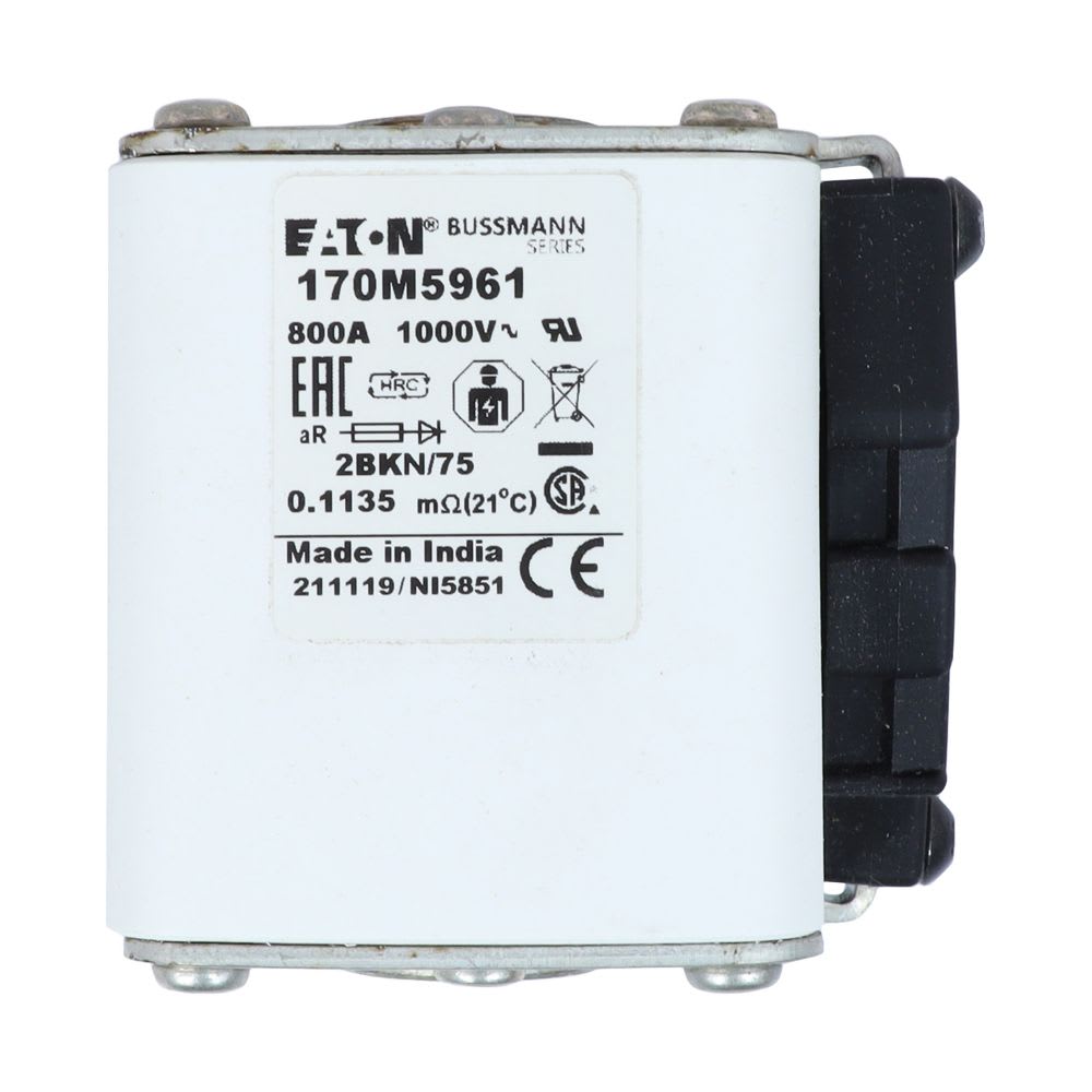 EATON INDUSTRIES - Cartuccia fusibile extra-rapido 800A 1000V 2BKN/75 AC UR 59x77x75mm IEC UL indicatore singolo. 170M5961