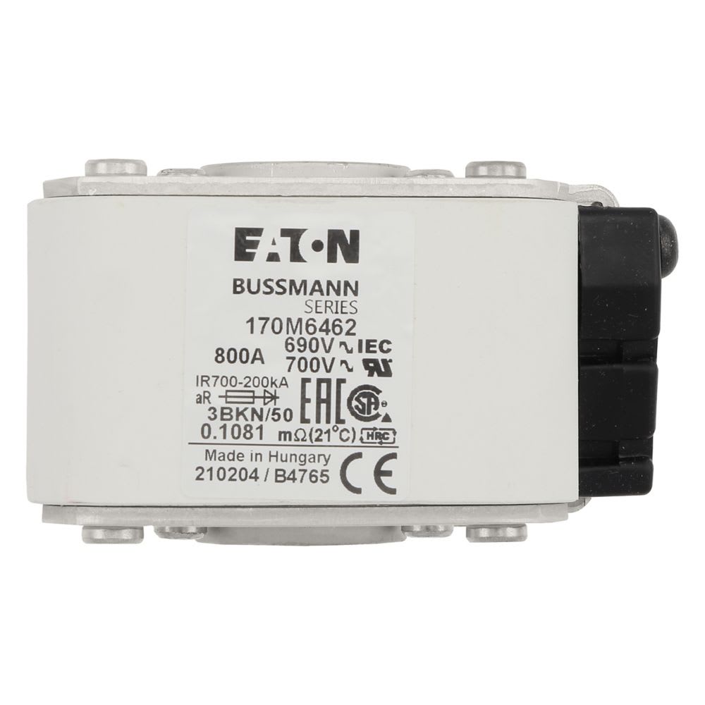 EATON INDUSTRIES - Cartuccia fusibile extra rapido 800A 690V dimensioni 3 aR IEC UL indicatore singolo 170M6462 FUSE 800A 690V 3BKN/50 AR UC. 170M6462