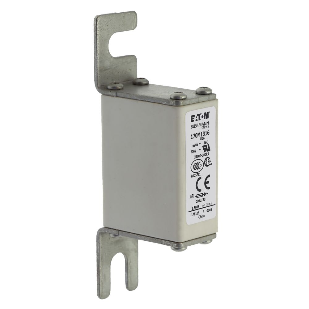 EATON INDUSTRIES - Cartuccia fusibile extra-rapido 80A 690V 000U/80 AR UC 21x40x100mm AC DIN IEC. 170M1316
