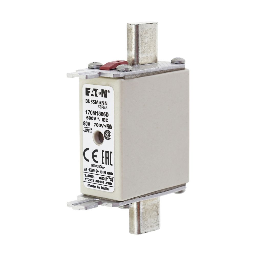 EATON INDUSTRIES - Cartuccia fusibile extra rapido 80A 690V AC DIN 000 aR IEC indicatore doppio linguette impugnatura sotto tensione 170M1566D FUSE 80A 690V AR DIN 000 HSDNH