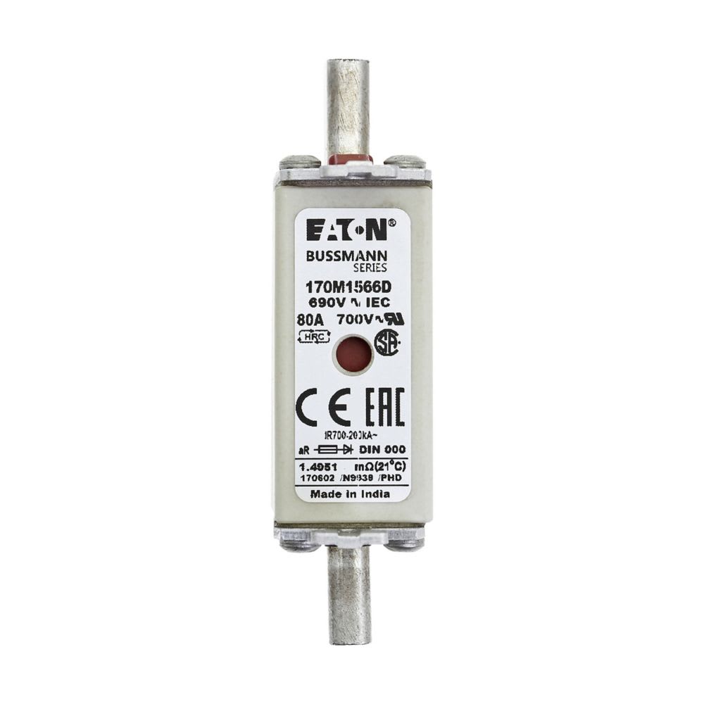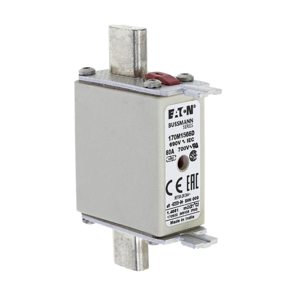 EATON INDUSTRIES - Cartuccia fusibile extra rapido 80A 690V AC DIN 000 aR IEC indicatore doppio linguette impugnatura sotto tensione 170M1566D FUSE 80A 690V AR DIN 000 HSDNH 170M1566D