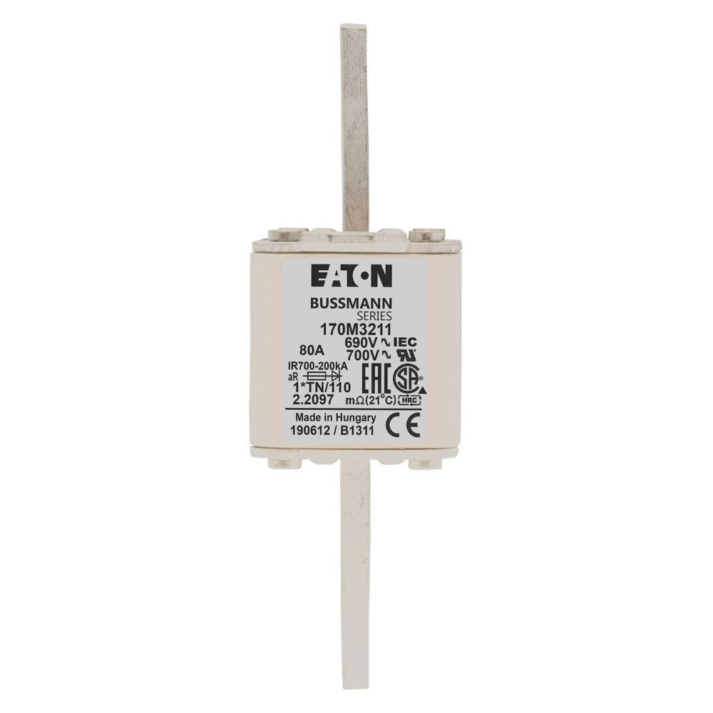 EATON INDUSTRIES - Cartuccia fusibile extra-rapido 80A 690V compact DIN 1 45x58x134mm aR IEC indicatore singolo 170M3211 FUSE 80A 690V 1*TN/110 AR UC 170M3211