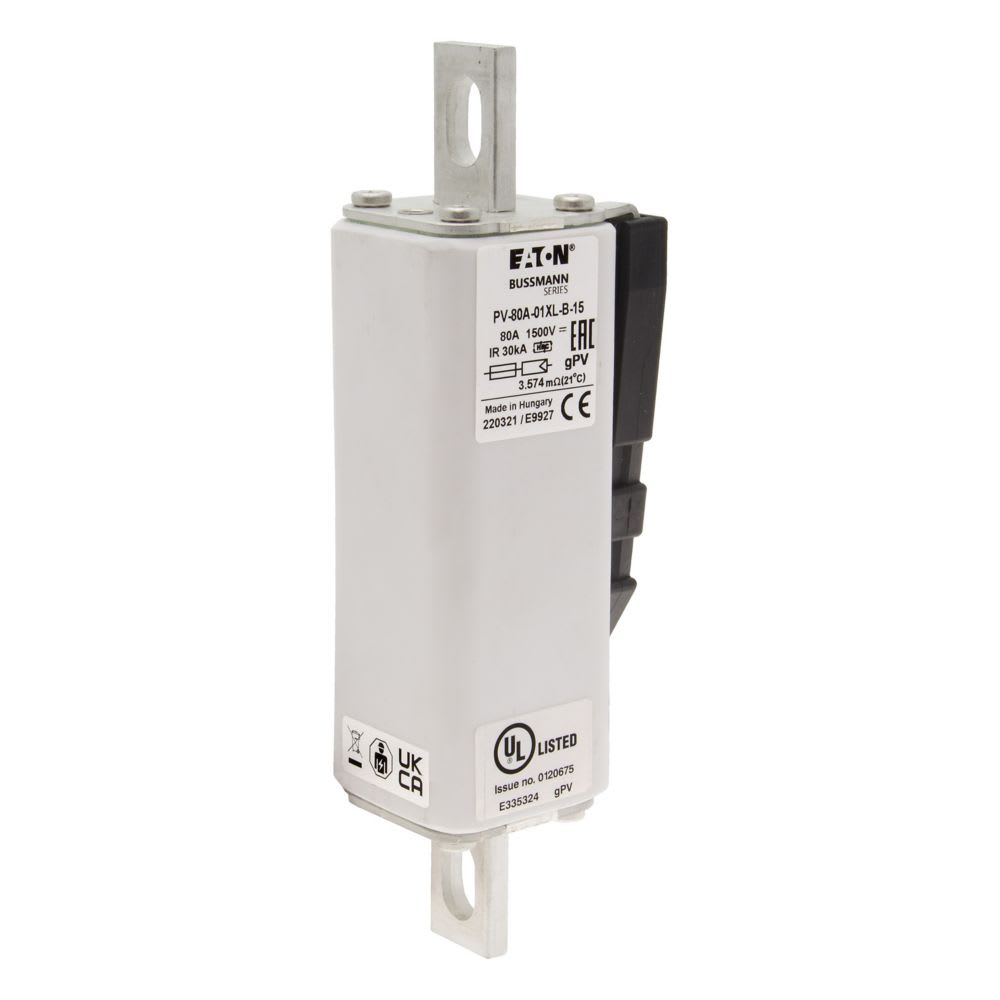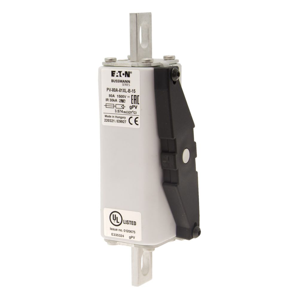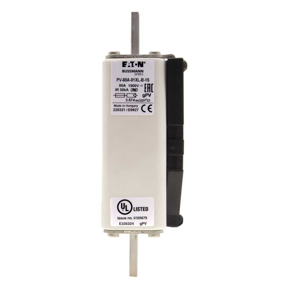 EATON INDUSTRIES - Cartuccia fusibile extra-rapido 80A DC 1500V 01XL 47x60x189mm gPV UL IEC collegamento con bulloni PV-80A-01XL-B-15 FUSE 80A 1500V 1*XL PV