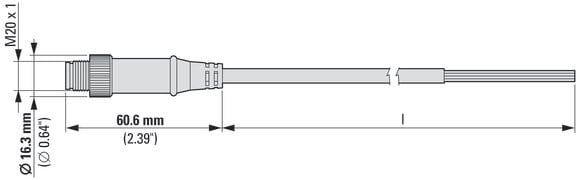 EATON INDUSTRIES - Cavo I/O rotondo IP67, 0,6 metri, 5 poli, prefabbricato con spina M12, intestato su un LA.